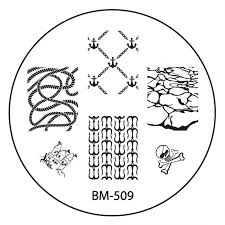 I used Floss Gloss in "Tanlines," Salon Perfect "Baby Blues" and Zoya "Ling" to create my gradient. Then I stamped on the waves with Bundle Monster plate #BM509, using Funky Fingers "Gesso" as my stamping polish. Finally I added some nail confetti from Bundle Monster - a cute little anchor - to finish the design. This mani was cute and easy, and allowed me to drift away for a little bit, if only in my mind :)